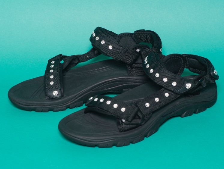 こちらは定番のサンダルをベースにスワロフスキーを施した逸品。アウトドア一辺倒にならず、オシャレ心を忘れないさりげなさが心にくい。日差しの中で輝き、目立つこと請け合いだ。ただ丈夫に作られているとはいえ、高価なスワロフスキーのためはしゃぎすぎて落としてしまわないように注意。