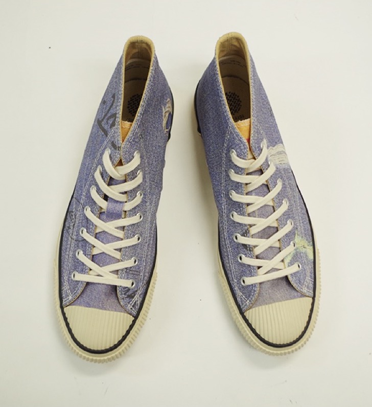 まずは往年の定番であるキャンバスのオールスターをモデルとしたこちらのスニーカー。前述のショートパンツと同じく、デニムの転写が施されていて、ヴィンテージの風合いとスッキリとしたフォルムでコーディネート全体の印象をオシャレにまとめてくれそうだ。