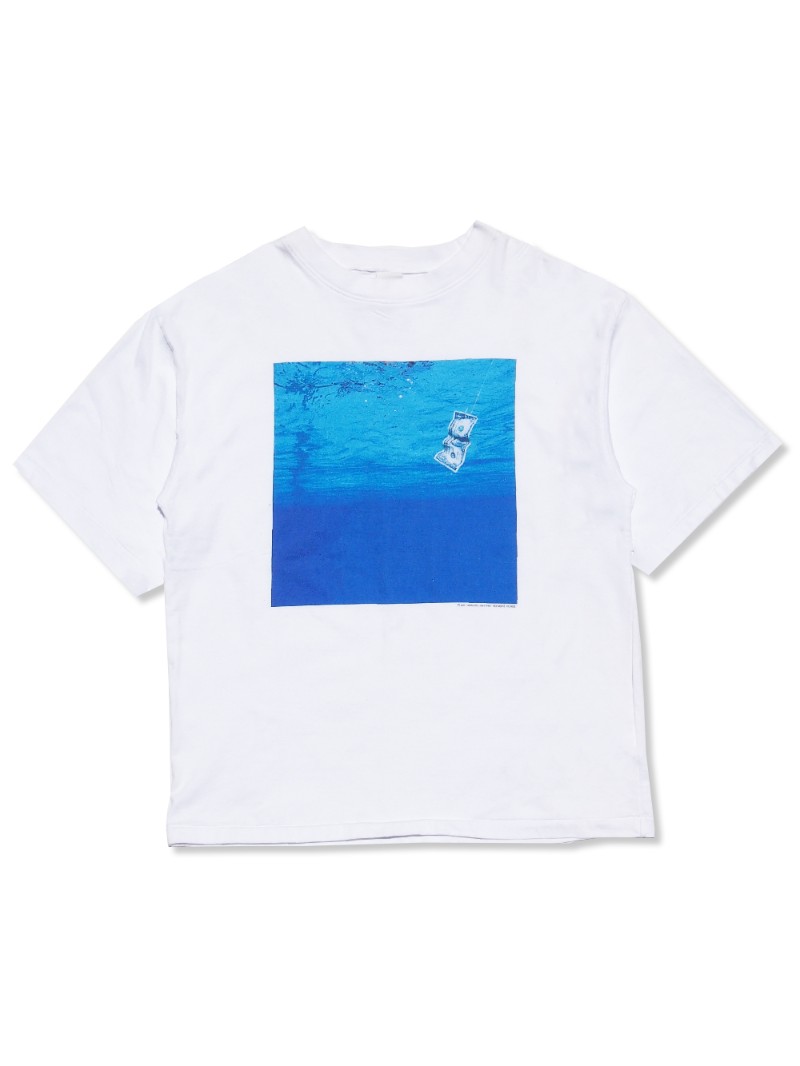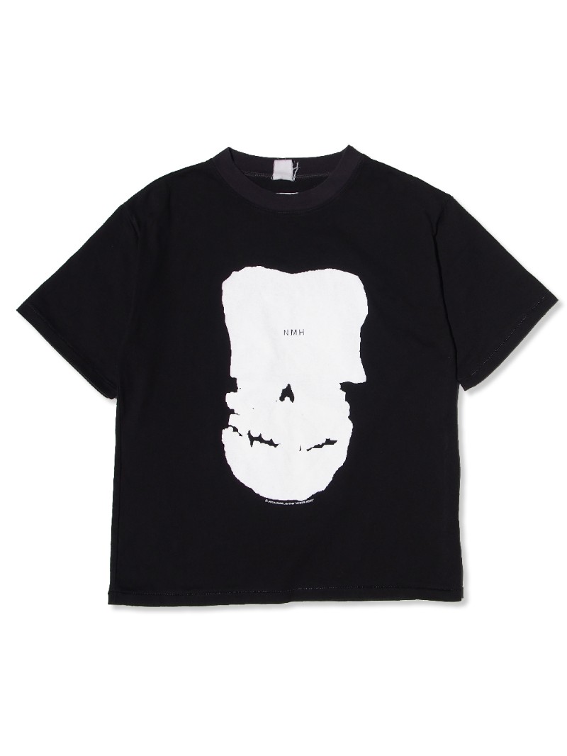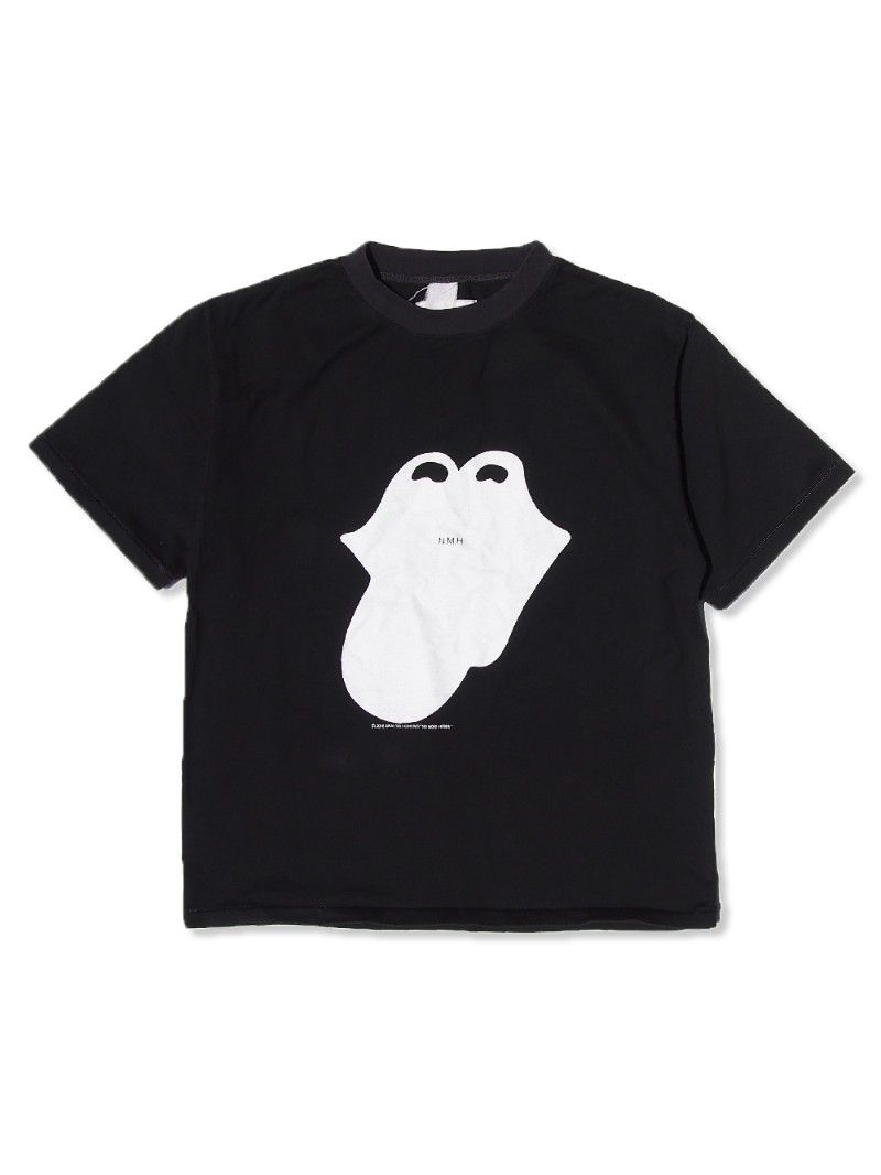 また黒いヴインテージTシャツが色落ちしてグラデーションした感じは美しいなあと思うので、リアルに再現しました。色々と試したのですが、青っぽく落ちる厚い生地を、長時間痛めるのが一番質感が良かったですね。シルエットも、ロックTで使われているアメリカンボディのTシャツが、縮んじゃって型崩れした感じが出るよう、今のTシャツにはないパターンを引いています。ぜひ着て実感して欲しいですね。