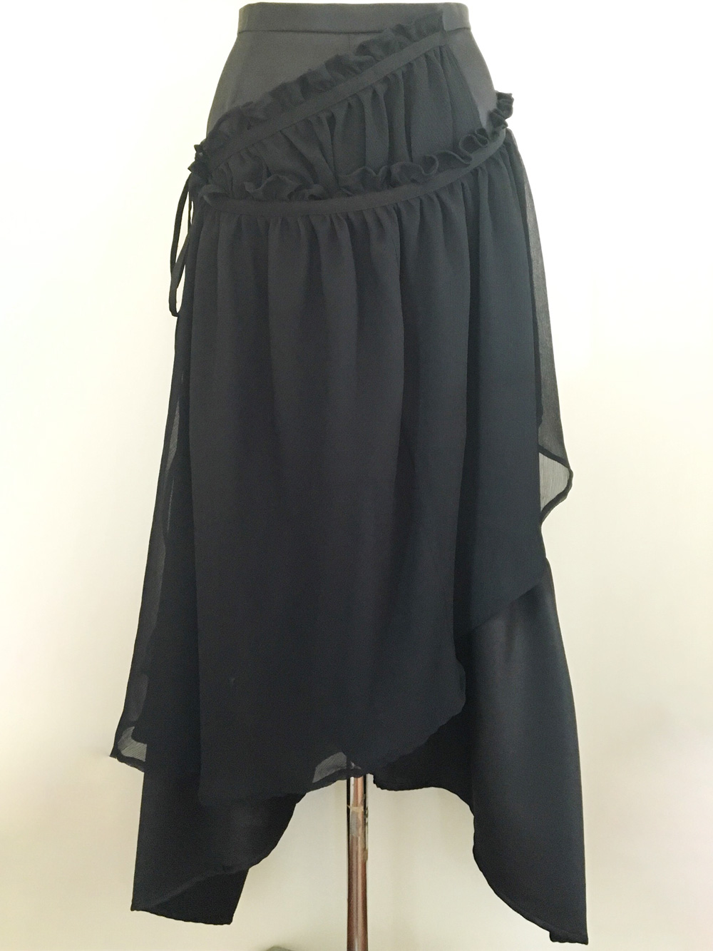 silk wool twill layered skirt