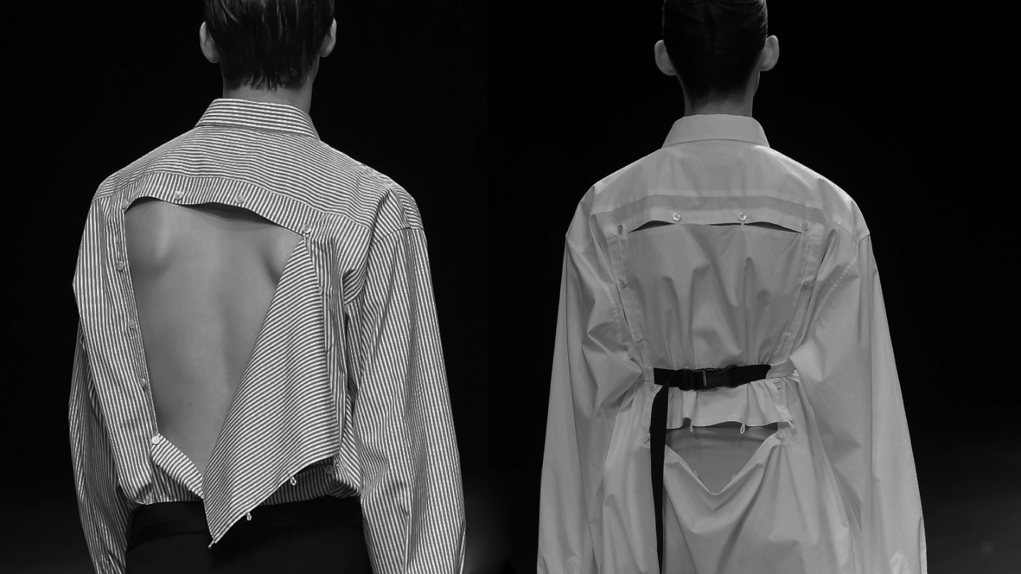 今回はバックスタイルがキーとなるアイテムです。バックパネルシャツなどが象徴的なアイテムとなります。バックパネルシャツは、背中が取り外せるパネル状になっていて、ボタンを外したり、中のインナーを見せたり、組み合わせはお客様主体で楽しんでもらえます。無地とストライプがあるので、パネルを友達とシェアするのも楽しみ方の一つです。