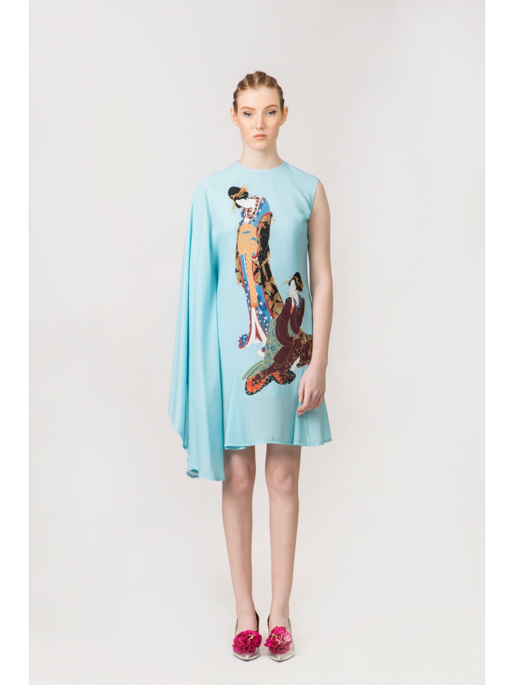 このワンピースは、友禅の技術を量産できるように、より手ごろに落とし込むよう考えました。