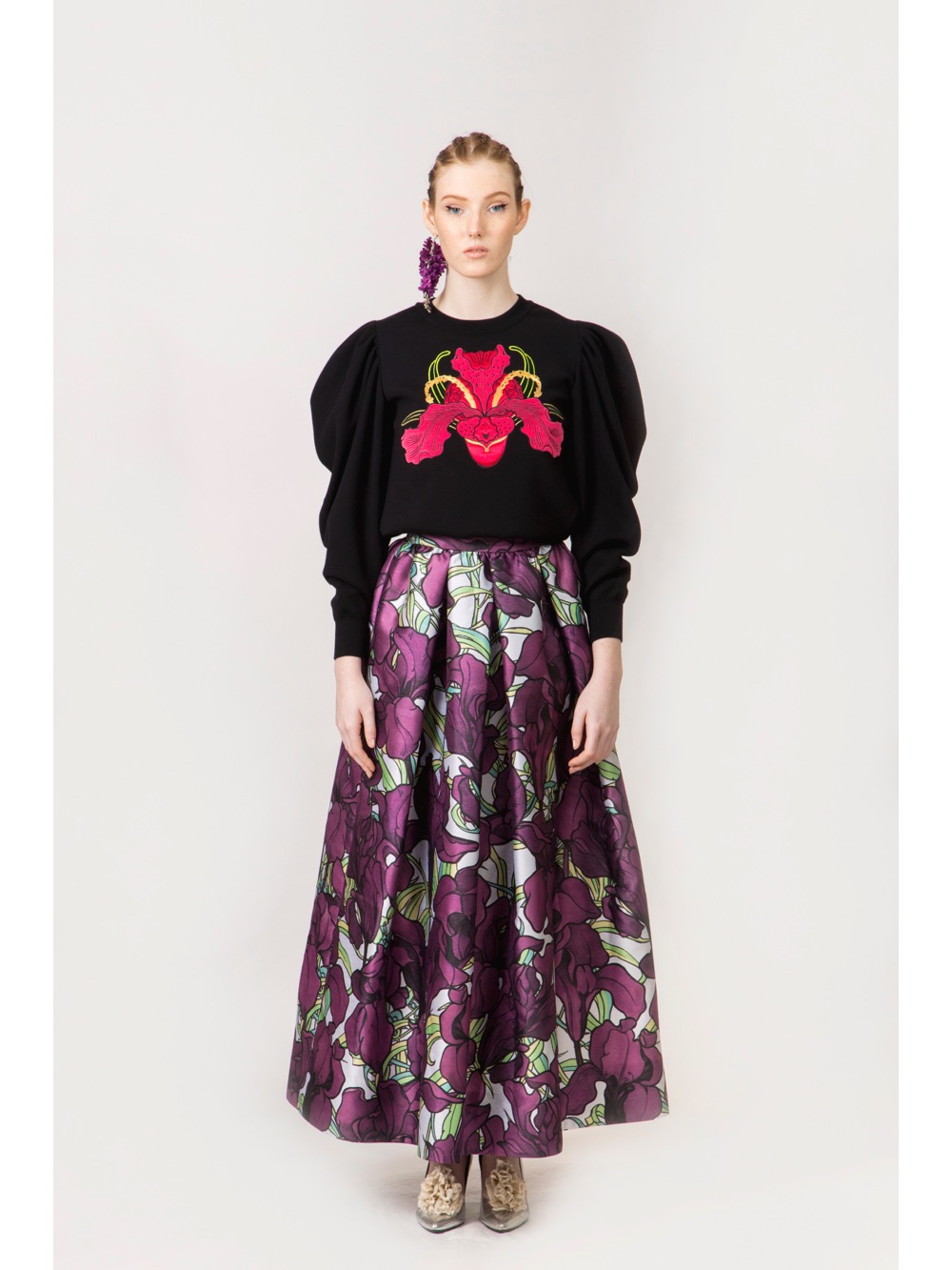 アールヌーボー調の蘭をイメージしたモチーフのニット。